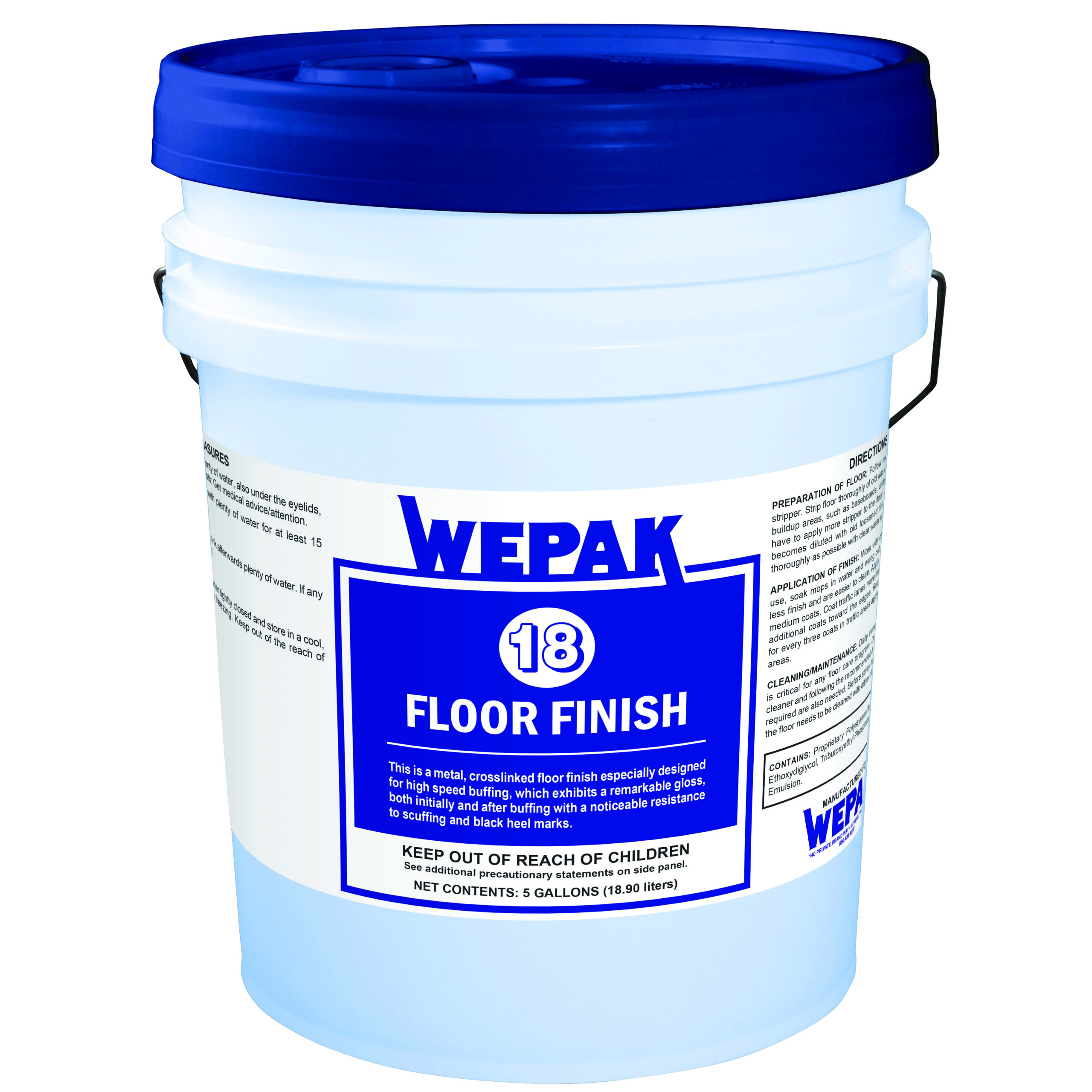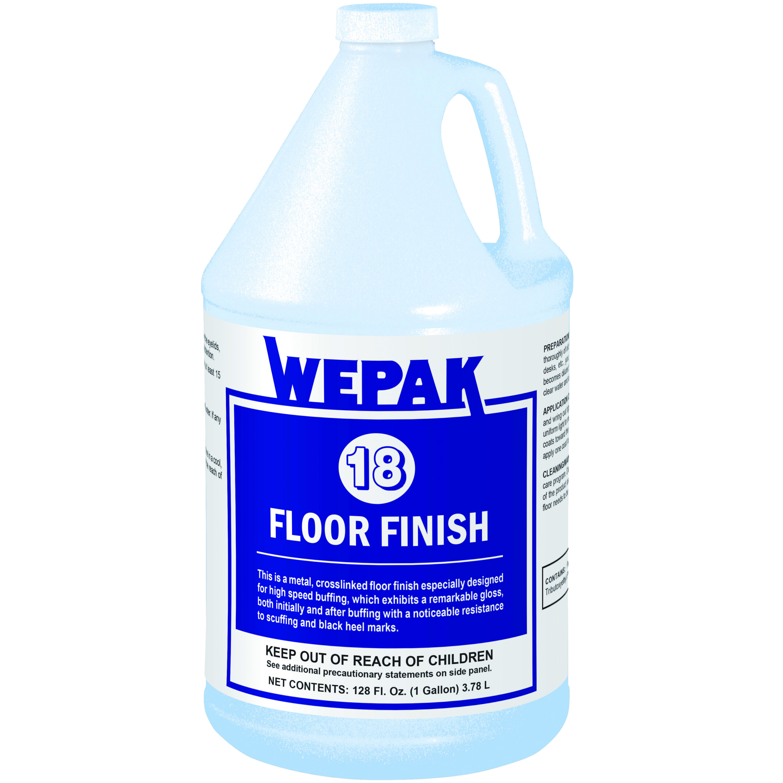 This is a metal, crosslinked floor finish especially designed for high speed buffing, which exhibits a remarkable gloss, both initially and after buffing with a noticeable resistance to scuffing and black heel marks.