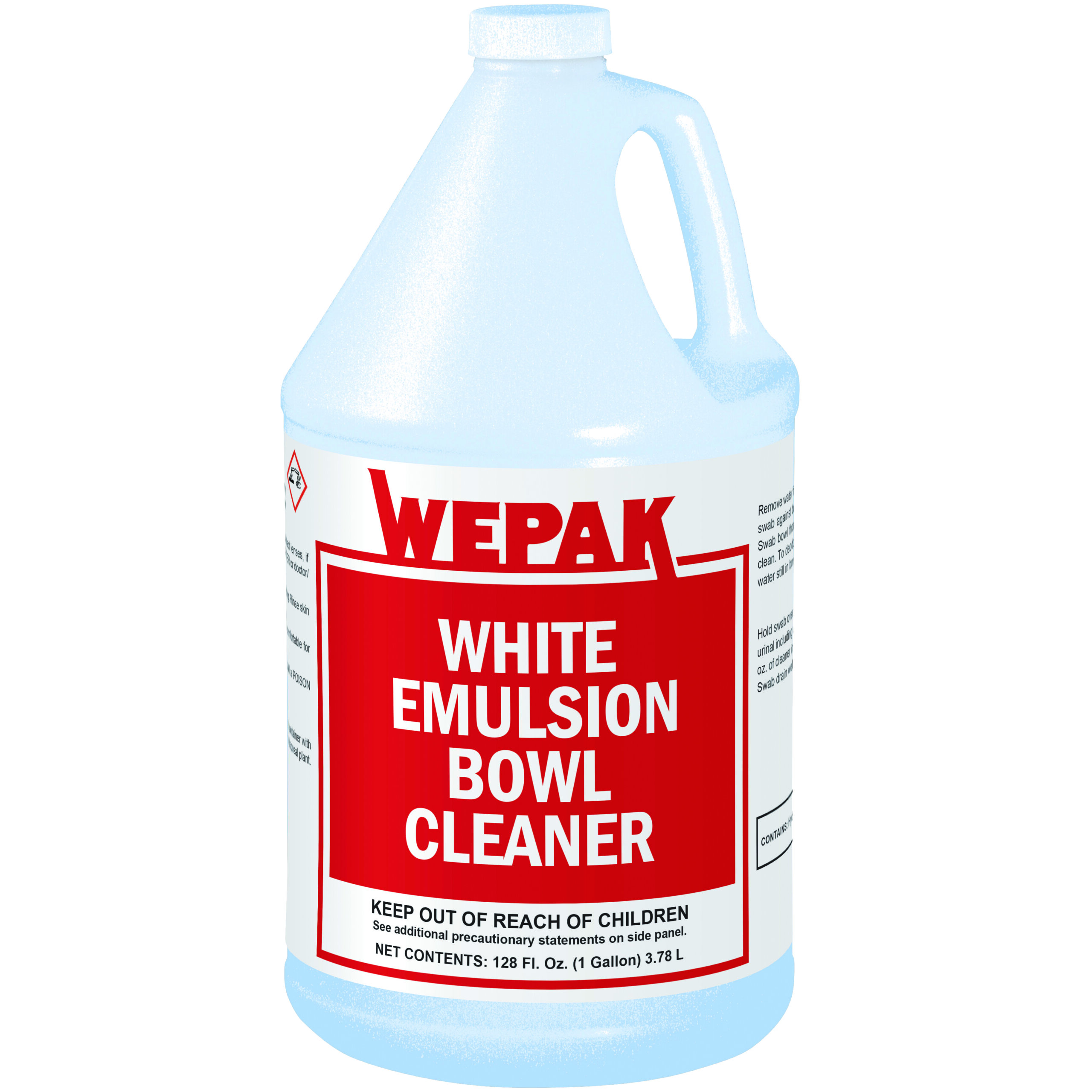 White Emulsion Bowl Cleaner’s concentrated 23.3% hydrogen chloride formula allows you to clean, descale and deodorize toilet bowls and urinals with minimal effort. Use only as directed. This product is not suitable for use on sinks, bathtubs, porcelain, or any penetrable surfaces. Do not use on cracked or chipped porcelain.